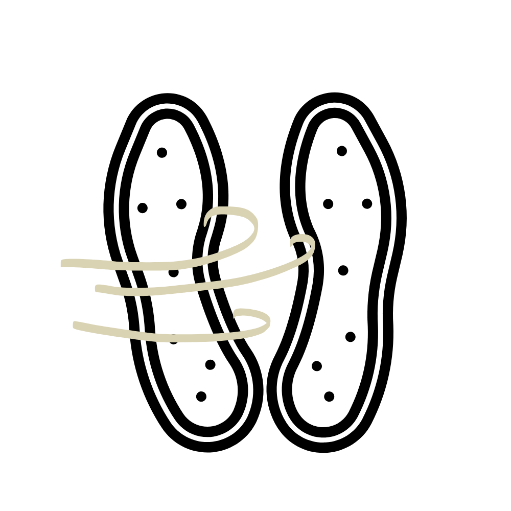 足にあっているかを確かめるには、インソールに足を乗せるのが一番です。バレーシューズには、足裏の形に合わせてくれる中敷き(インソール)がありません。そのため、足にあった靴かどうか確かめるのが難しいです。